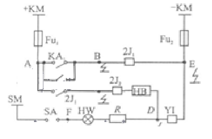 (4)直流接地的危害。當(dāng)直流中一極接地時(shí),假如再產(chǎn)生另一極接地,將形成直流正負(fù)極短路,開關(guān)跳閘,負(fù)載失掉維護(hù),帶有直流失壓脫扣的高壓電機(jī)立即跳閘,設(shè)備停工。