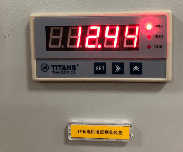 2. 康復充電機后,通過調(diào)查兩套充電機輸出電流表并用鉗形電流表測量,確認兩套充電機均有輸出。