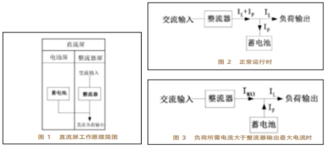 2直流屏作業(yè)原理圖1為直流屏作業(yè)原理簡圖。在圖1中,蓄電池和整流器組成了變電站的直流屏,當有溝通輸入電源時,整流器作業(yè),把溝通電整流成直流電,與蓄電池一起協(xié)作,供應(yīng)直流負荷安穩(wěn)的直流電源。