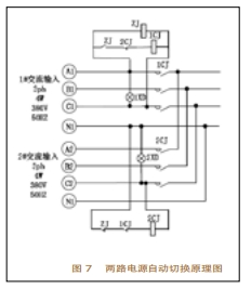 上面介紹的兩路溝通電源切換是在正常情況下的兩路供電時,但因為我臺的高壓電源進線只有一路,即直流電源系統(tǒng)只有l#溝通輸入電源。當1#溝通輸人電源失電時,因為沒有2#溝通輸入電源,所以無法完成正常的兩路電源的切換。下面我們所剖析的直流屏缺點,即使在有兩路溝通電源供電的情況下,仍然無法完成兩路電源的自動切換。