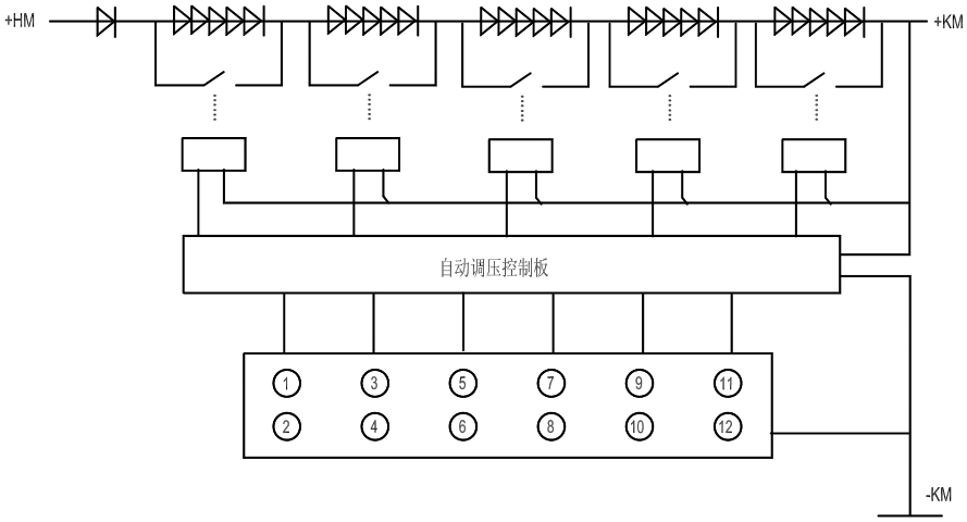 調(diào)節(jié)控制母線電壓,以向負載提供合適的直流電壓。通常采用降壓硅鏈串接于合閘母線和控制母線之間進行調(diào)壓,允許范圍2.5%Ue??勺詣踊蚴謩诱{(diào)節(jié)。