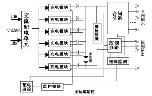 直流屏由高頻開關(guān)整流模塊,可編程控制器(PLC,蓄電池組,絕緣監(jiān)視裝置,蓄電池自動(dòng)監(jiān)測裝置,母線電壓自動(dòng)調(diào)節(jié)裝置,觸摸屏,預(yù)告信號裝置等組成。蓄電池采用免維護(hù)電池。
