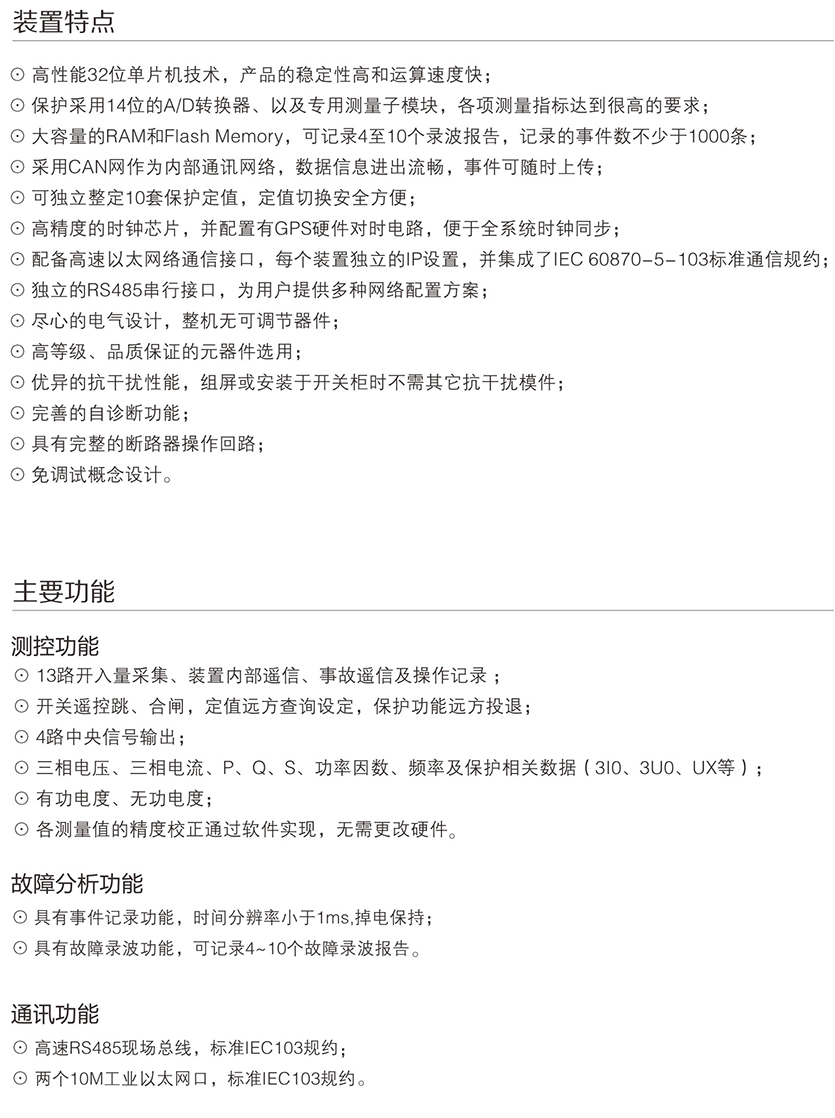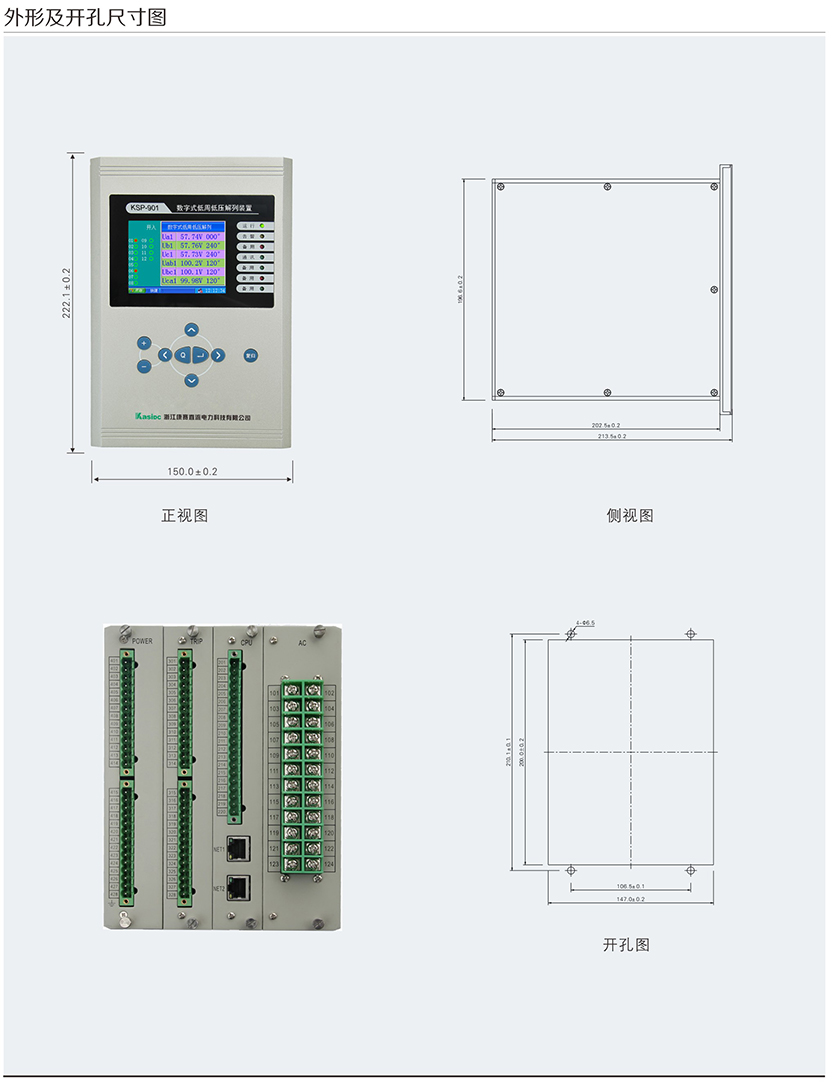 KSP-900 系列綜合保護測控裝置主要適用于 110kV 及以下電壓等級 間隔單元的保護測控,為變電站、發(fā)電廠、高低壓配電廠及廠用電 系統(tǒng)的保護與控制提供 完整的解決方案。產(chǎn)品采用完全真彩漢化的 顯示技術(shù) , 人機界面友好,使您免除査找說明書操作的煩惱。每款產(chǎn) 品均配置了基于 PC 機調(diào)試界面的接口,結(jié)合專用分析調(diào)試軟件包 , 大大改善了現(xiàn)場調(diào)試手段。裝置可以集中組屏安裝,也可以分散在 開關柜就地安裝。