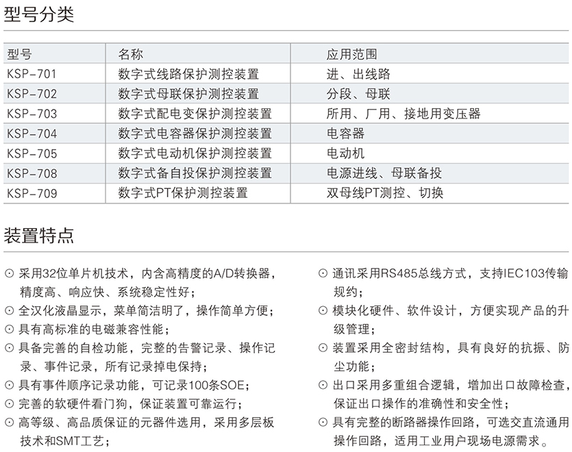 KSP-700系列數(shù)字式保護測控裝置是我公司為適應(yīng)我國工業(yè)電氣自動化發(fā)展的需要,積累多年電力自動化運行經(jīng)驗,吸收國外先進技術(shù),向廣大用戶推出的集保護、測量、控制、通訊于一體的高性能數(shù)字式保護測控裝置,廣泛適用于35kV及以下電壓等級變電站、開關(guān)站及廠用電的新建和改造工程。為其配電系統(tǒng)的保護與控制提供完整的解決方案。裝置可以集中組屏安裝,也可以分散在開關(guān)柜就地安裝。